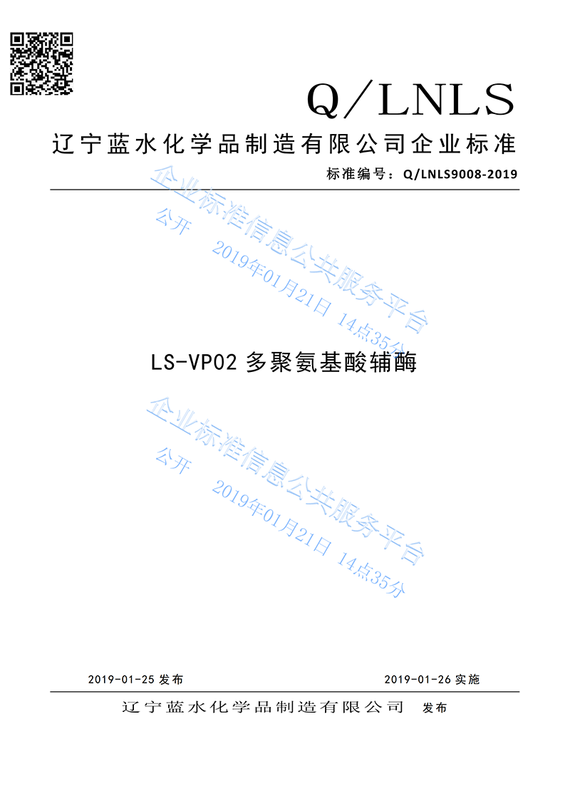 標準名稱:LS-VP02多聚氨基酸輔酶標準編號:Q/LNLS9008-2019鏈接地址:http://www.cpbz.gov.cn/standardProduct/showDetail.do?innerCode=Q-91210124671980812M-201901211435-0001&token=5cfa6129-0e40-451f-8790-3a5579653017附件:Q_LNLS9008-2019LS-VP02多聚氨基酸輔酶最新.pdf公開時間:2019/1/21 14:35:37